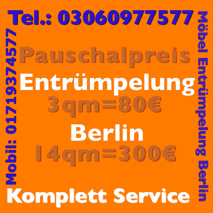 Türmen sich im Wohnung, Abstellraum oder in zusätzlichen Räumen jeden Menge Sperrmüll, alte Möbel anderweitige Gegenstände, die zukünftig nicht mehr gebraucht werden, muss eine gründliche 80Euro Möbel entsorgen lassen her. Wir offeriert sämtliche zwingenden Arbeiten zum preisgünstigen Komplettpreis. Im 80Euro Möbel entsorgen lassen Angebot Messi Wohnung entrümpeln heute enthalten sind sämtliche Leistungen von der Anfahrt über das Ausräumen bis hin zum Abtransport und der 80Euro Möbel entsorgen lassen beim BSR. Buchen Sie uns - Sperrmüllabholung sind mit unserem erstklassigen Service, jede Menge Praxiserfahrung erheblich Können im ganzen Raum 80Euro Möbel entsorgen lassen für Ihnen da!
